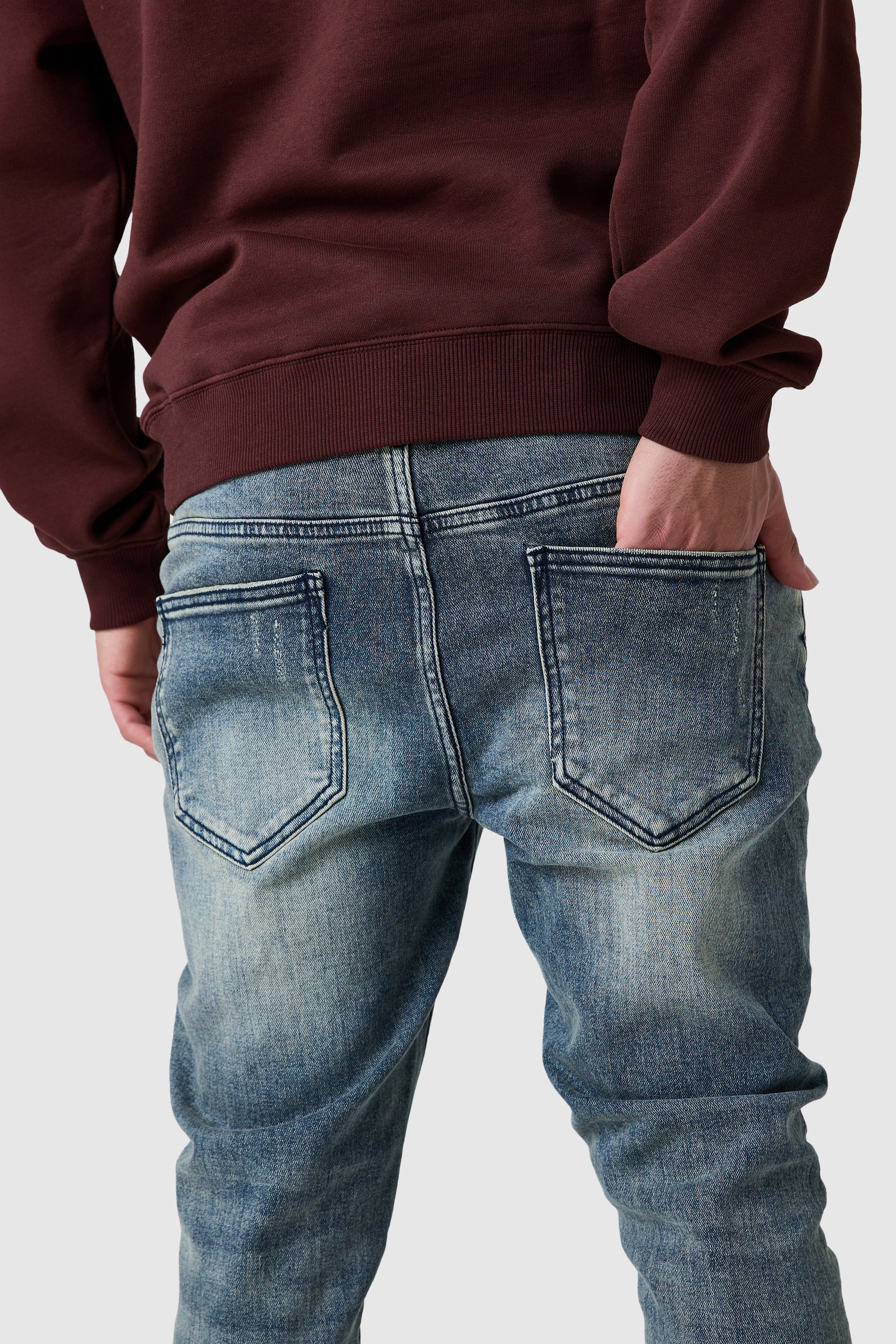 A versatile denim staple with a worn-in feel. The Arteon Jean in Vintage Blue is cut for a streamlined silhouette with natural stack through the ankle, crafted from stretch denim for comfort and everyday movement. Finished with subtle detailing that gives each pair its own character.