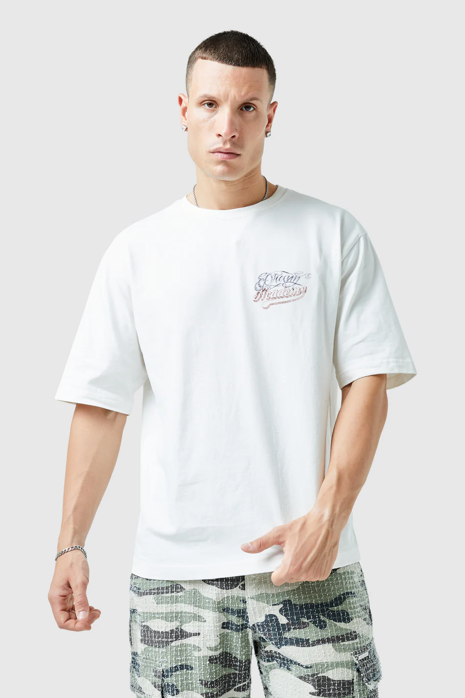 Rehaussez votre look urbain avec ce t-shirt à épaules tombantes, confectionné en coton épais et orné de notre imprimé signature au dos. Un incontournable pour vos tenues décontractées, du matin au soir.
