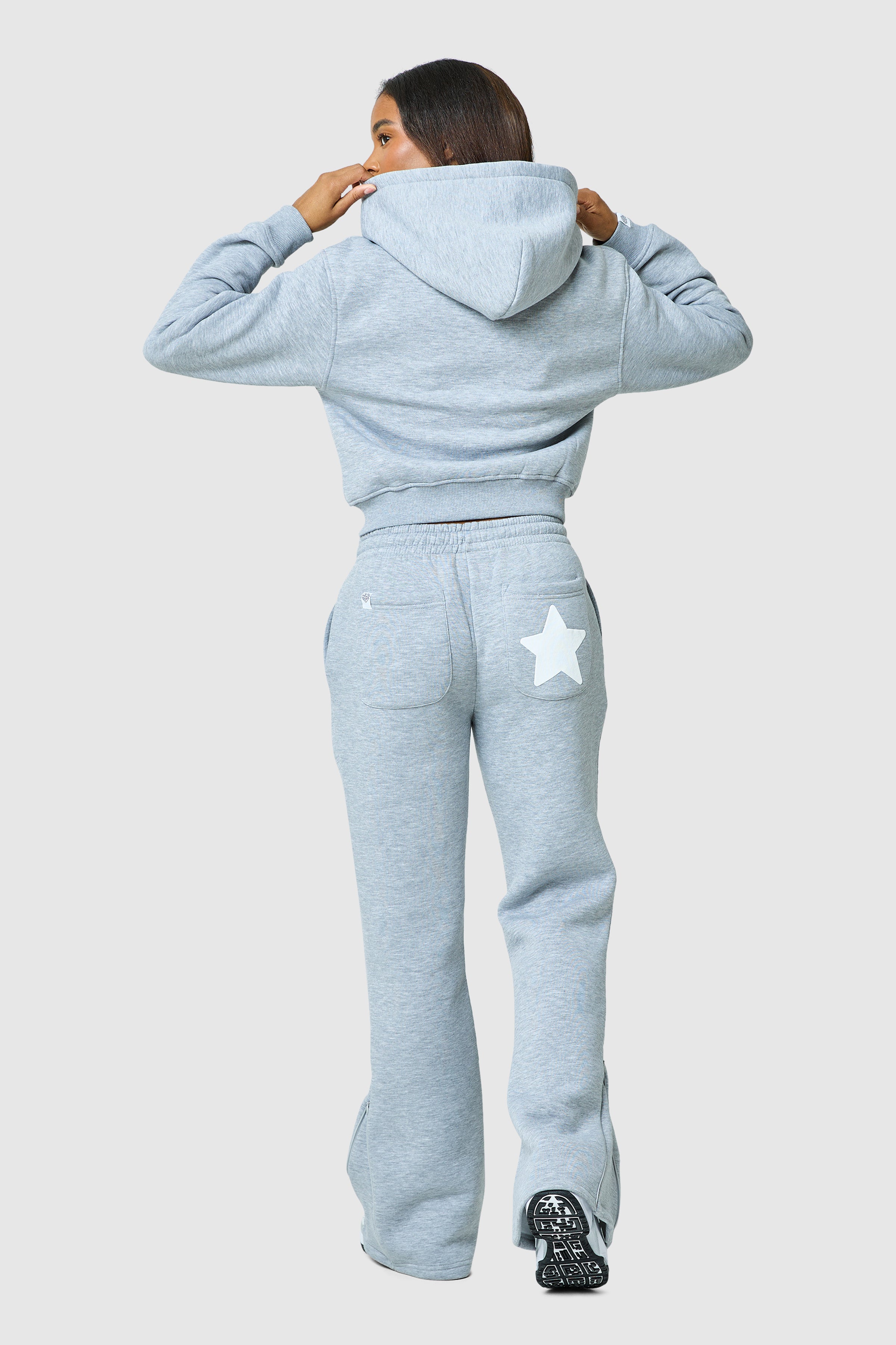 Introducing the Luna Tracksuit. Featuring a bold graphic puff print and ribbed cuffs and hem hood and a wide leg jogger, Luna is a new staple.