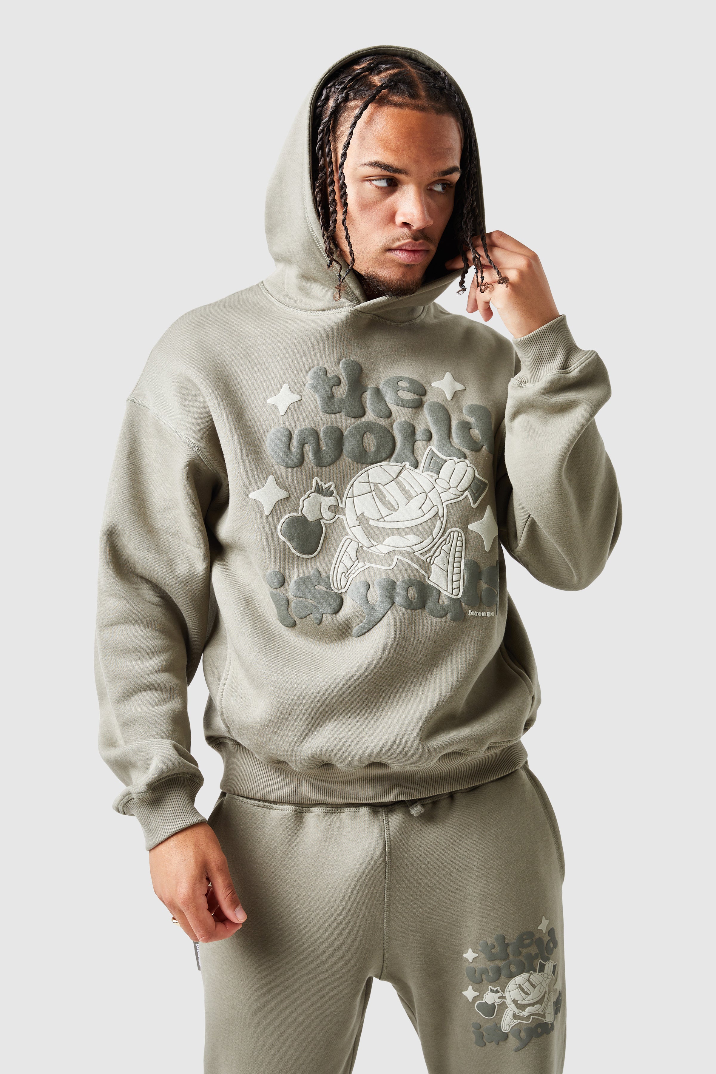 Doté d'une coupe décontractée à épaules tombantes, le sweat à capuche World Is Yours offre un confort ultime grâce à sa confection 100 % coton. Orné d'un imprimé graphique audacieux et de poignets et d'un ourlet côtelés, il s'associe parfaitement au jogging polaire assorti pour un look complet.