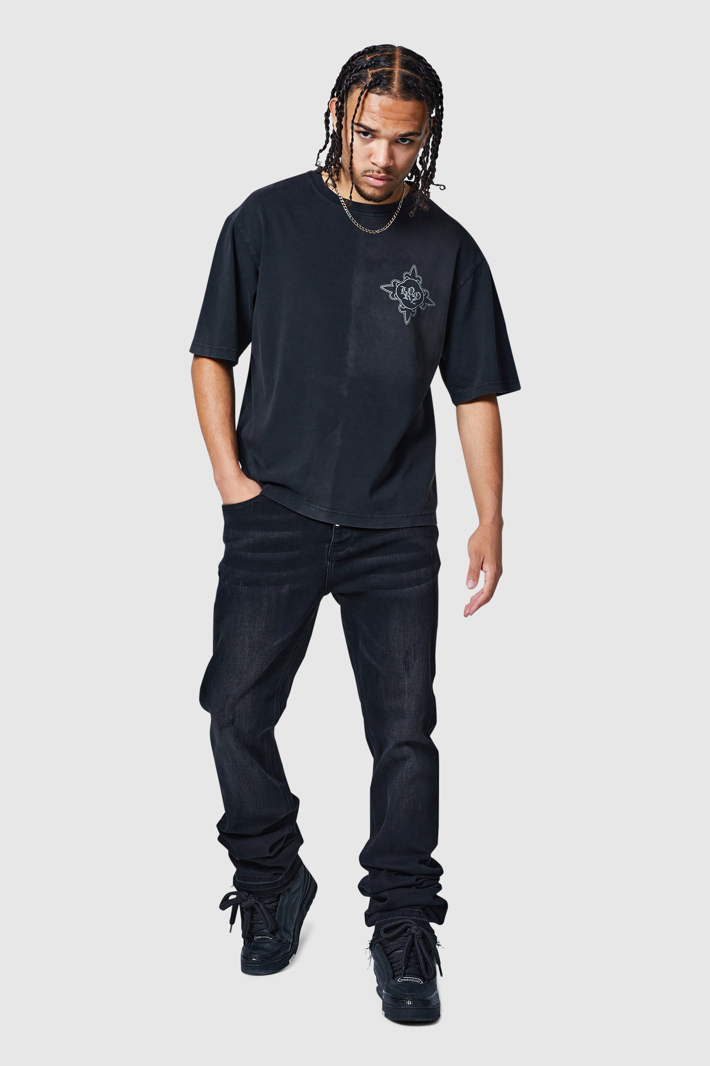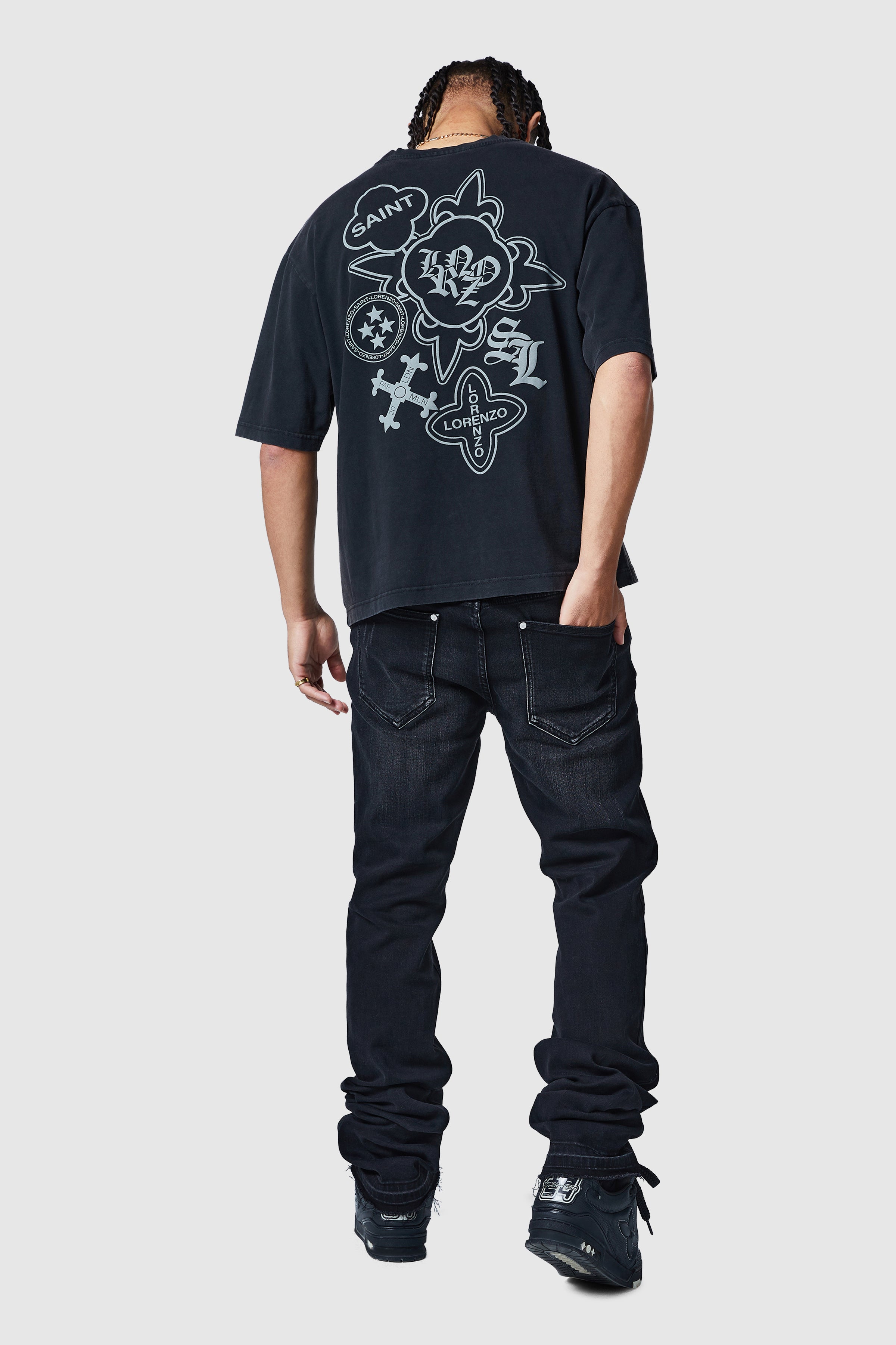 Le jean Stacked, un indispensable pour 2025. Ce jean Lorenzo, légèrement plus ample à la taille et aux cuisses, maintient une coupe ajustée, avec un bas de jambe extra long, offrant le look empilé idéal.