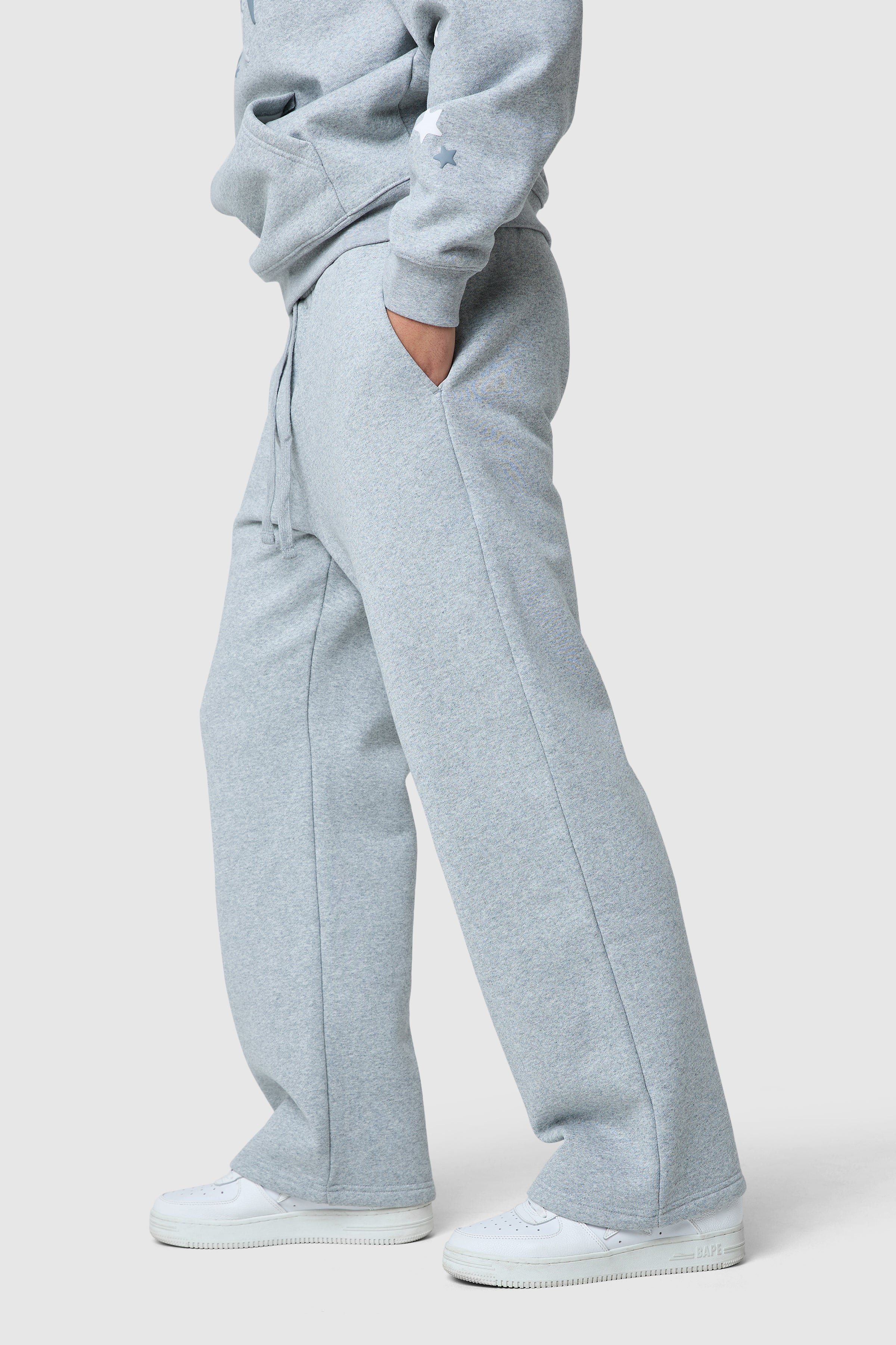 The Shooter Jogger in Grey Marl features a loose fit with a bold graphic screen print down one leg, blending comfort and style effortlessly. Pair with the matching hood for a relaxed, complete look.